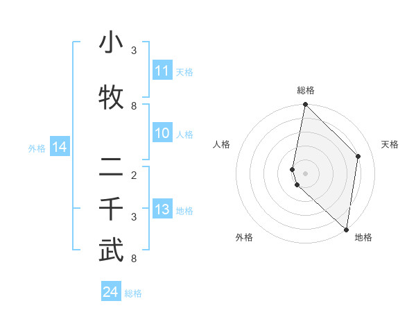小牧 二千武さんの外格は14画の1点!