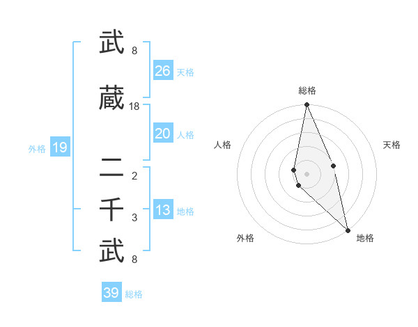 武蔵 二千武さんを姓名の画数から五運を鑑定