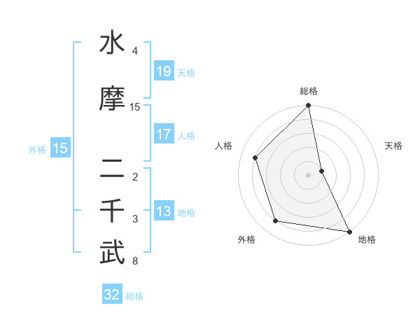 水摩 二千武さんを姓名の画数から五運を鑑定