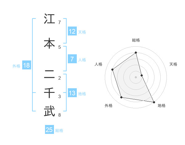 江本 二千武さんの総格は25画の4点!
