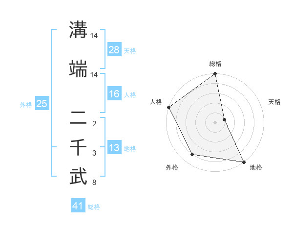 溝端 二千武さんを姓名の画数から五運を鑑定