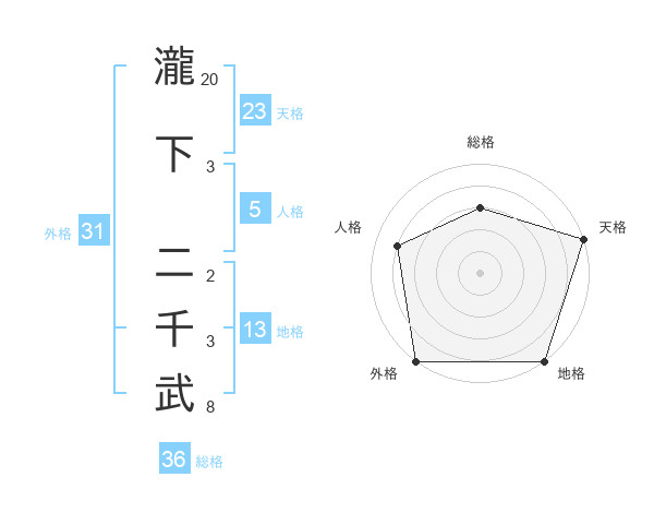 瀧下 二千武さんを姓名の画数から五運を鑑定
