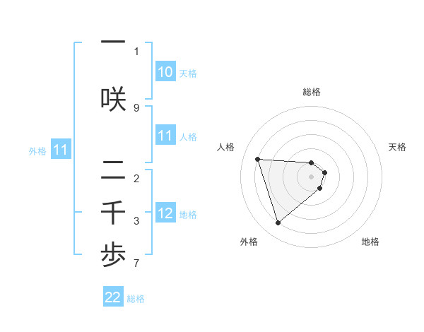 一咲 二千歩さんの総格は22画の1点!