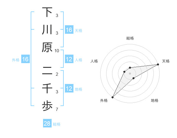 下川原 二千歩さんを姓名の画数から五運を鑑定