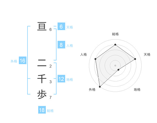 亘 二千歩さんの総格は18画の4点!