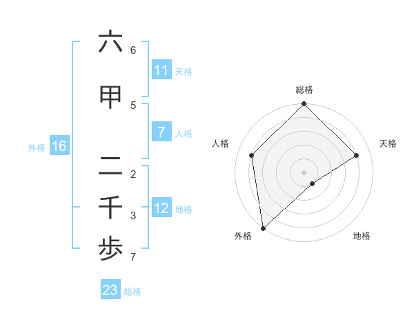 六甲 二千歩さんの総格は23画の5点!