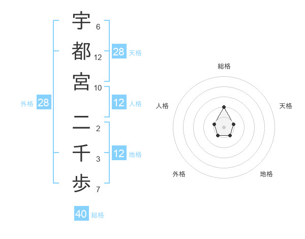 宇都宮 二千歩さんの地格は12画の1点!