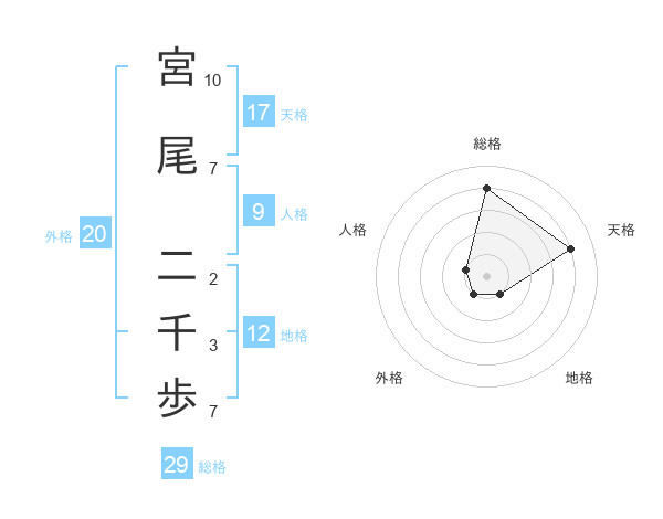 宮尾 二千歩さんの総格は29画の4点!