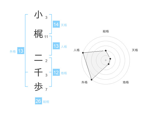 小梶 二千歩さんの外格は13画の5点!