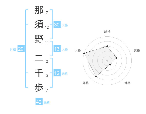 那須野 二千歩さんを姓名の画数から五運を鑑定