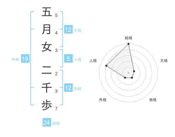 五月女 二千歩さんの総格は24画の5点!