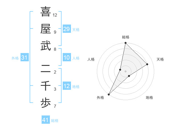 喜屋武 二千歩さんを姓名の画数から五運を鑑定
