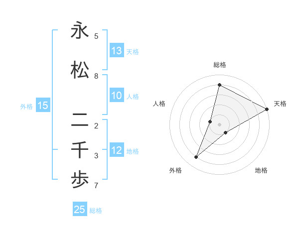 永松 二千歩さんを姓名の画数から五運を鑑定