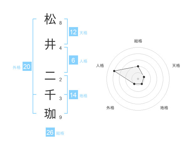 松井 二千珈さんを姓名の画数から五運を鑑定