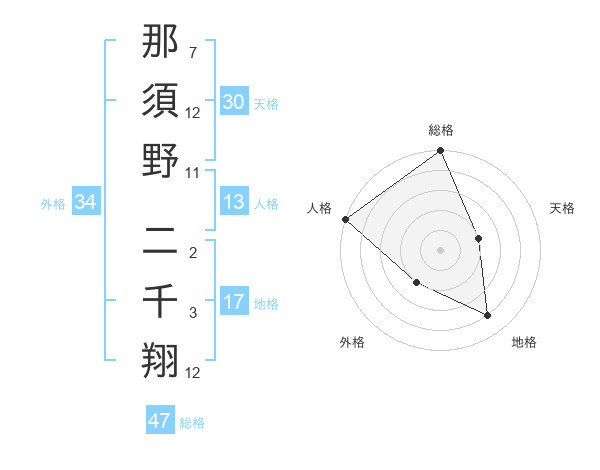 那須野 二千翔さんの総格は47画の5点!
