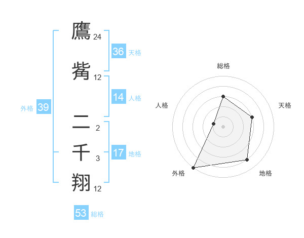鷹觜 二千翔さんを姓名の画数から五運を鑑定