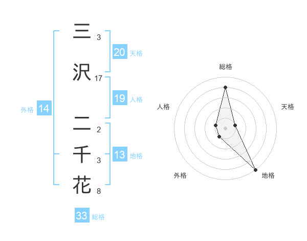 三沢 二千花さんを姓名の画数から五運を鑑定