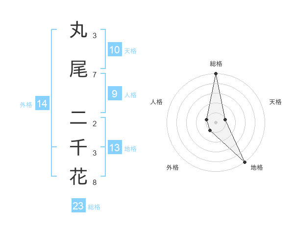 丸尾 二千花さんの総格は23画の5点!