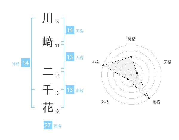 川﨑 二千花さんを姓名の画数から五運を鑑定