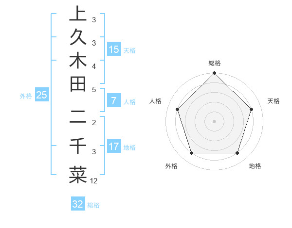 上久木田 二千菜さんを姓名の画数から五運を鑑定