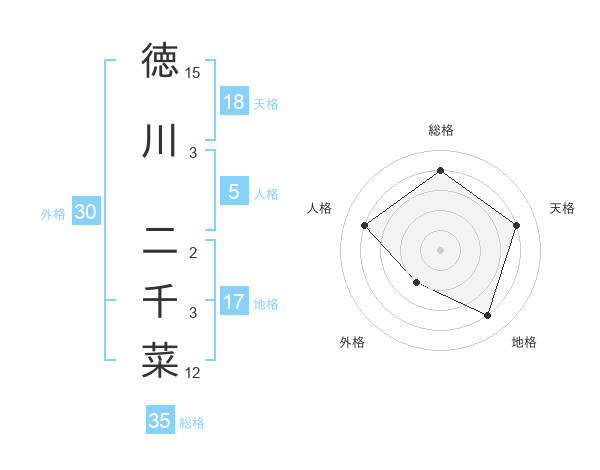 徳川 二千菜さんを姓名の画数から五運を鑑定