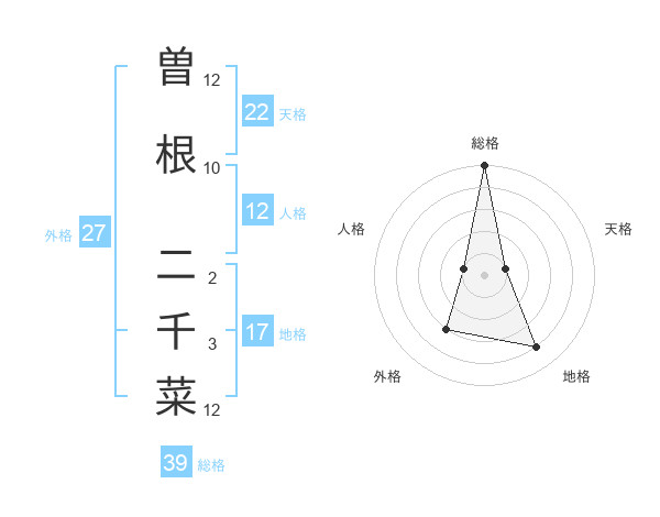曽根 二千菜さんを姓名の画数から五運を鑑定