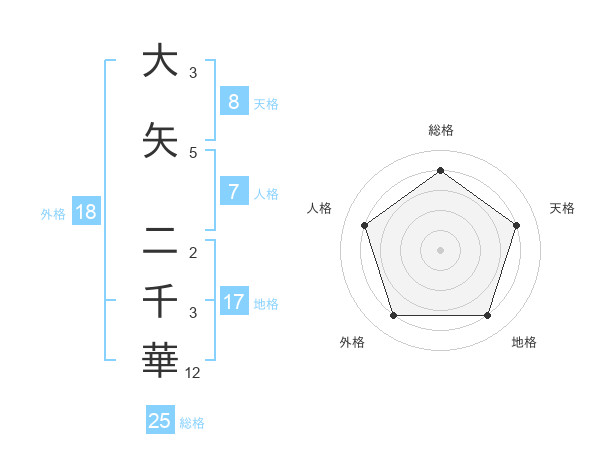 大矢 二千華さんを姓名の画数から五運を鑑定