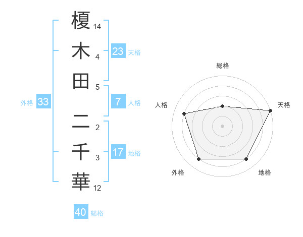 榎木田 二千華さんを姓名の画数から五運を鑑定