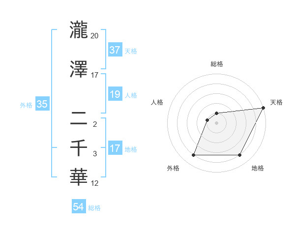 瀧澤 二千華さんを姓名の画数から五運を鑑定