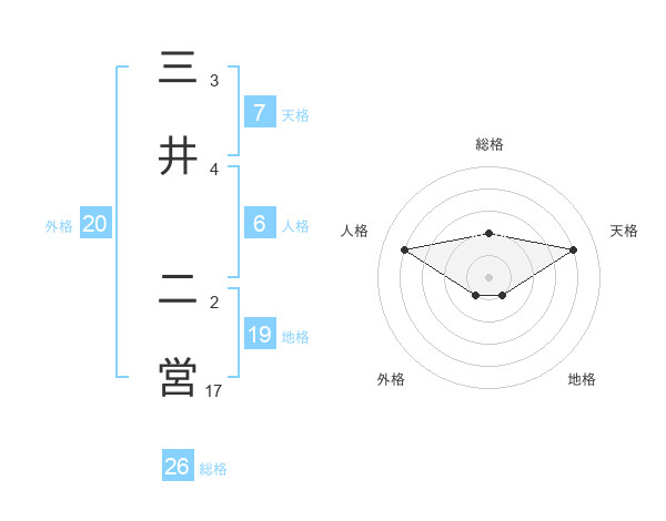 三井 二営さんの総格は26画の2点!