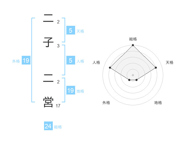 二子 二営さんの総格は24画の5点!