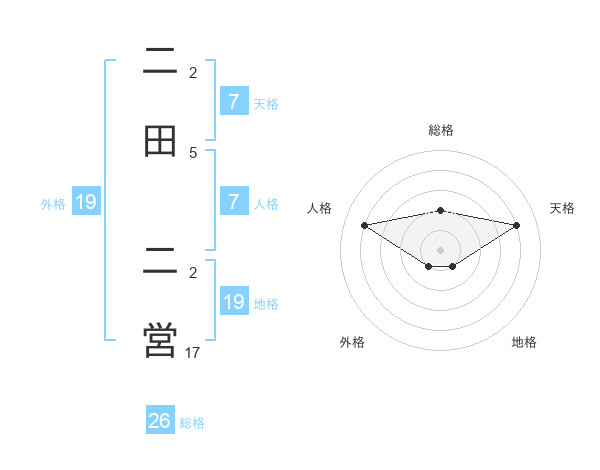 二田 二営さんの総格は26画の2点!
