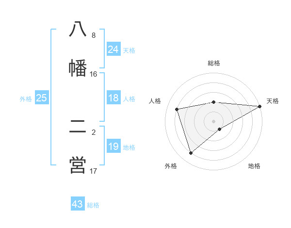 八幡 二営さんの天格は24画の5点!