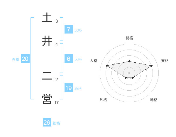 家系が持つ宿命的な運勢を表します。祖先から受け継いだ苗字ですので自分の力が及びません。家柄を象徴します。