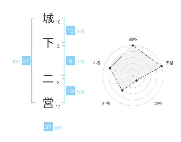 城下 二営さんの天格は13画の5点!