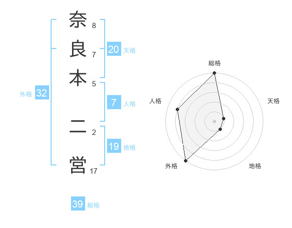 奈良本 二営さんの総格は39画の5点!