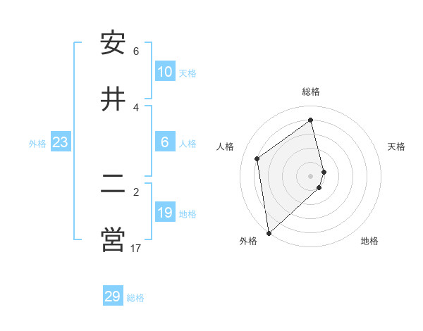 安井 二営さんの総格は29画の4点!