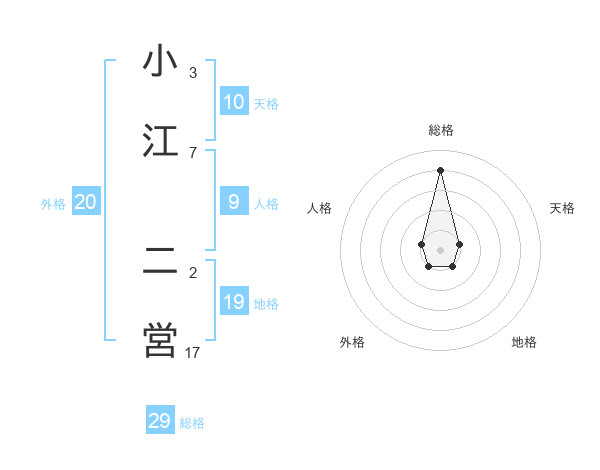 小江 二営さんの総格は29画の4点!