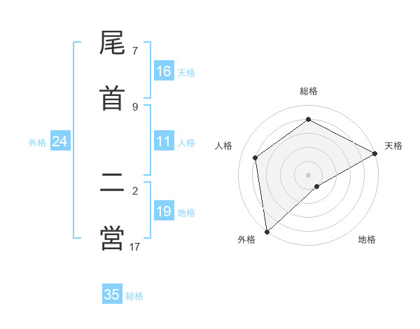 尾首 二営さんの天格は16画の5点!