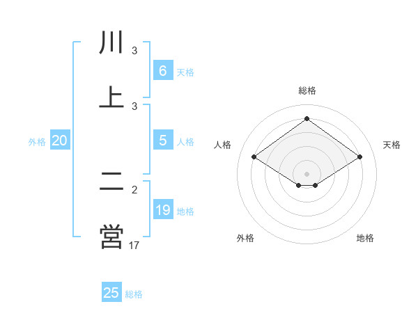 川上 二営さんの総格は25画の4点!