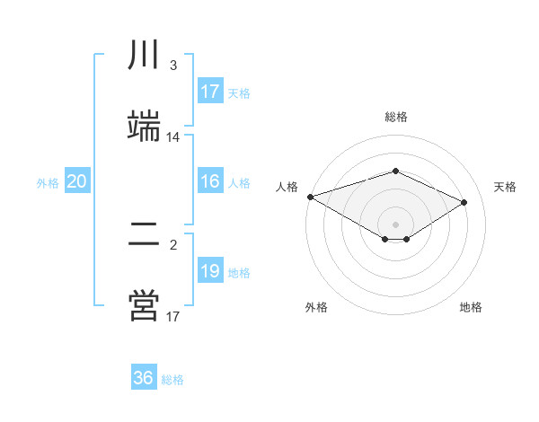 川端 二営さんの天格は17画の4点!