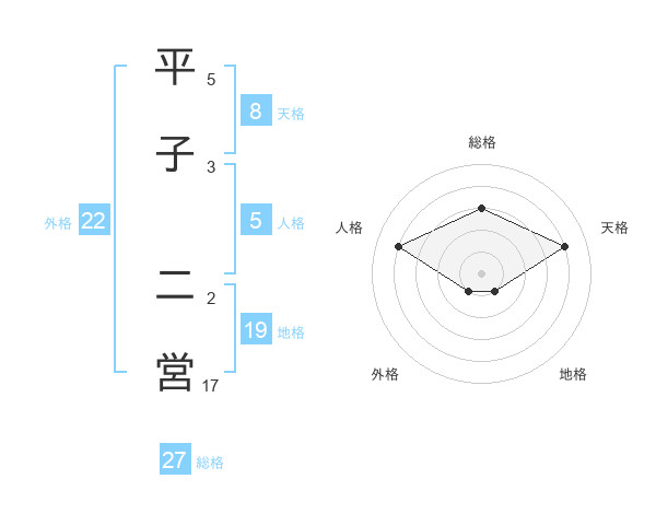 平子 二営さんの外格は22画の1点!