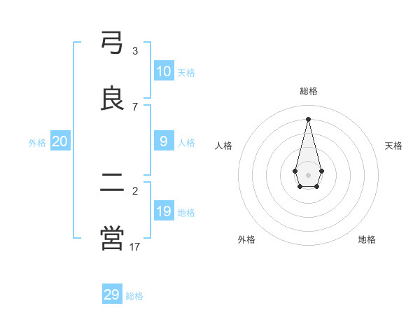 弓良 二営さんの総格は29画の4点!