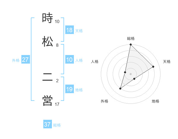 時松 二営さんの総格は37画の5点!
