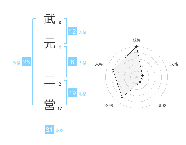 武元 二営さんの総格は31画の5点!