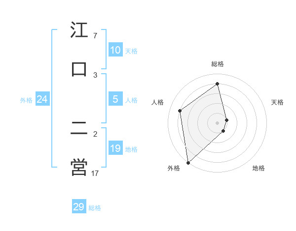 江口 二営さんの総格は29画の4点!