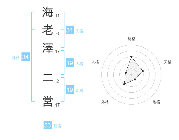 海老澤 二営さんを姓名の画数から五運を鑑定
