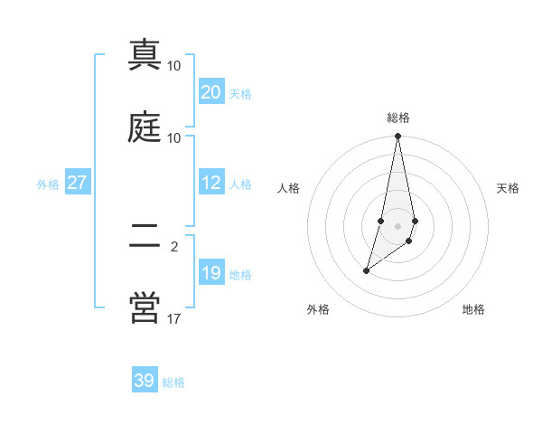 真庭 二営さんの総格は39画の5点!