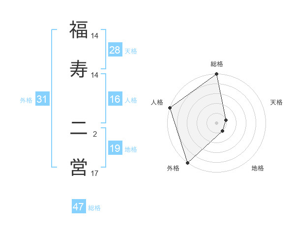 福寿 二営さんの総格は47画の5点!