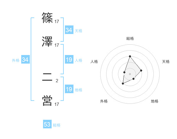 篠澤 二営さんを姓名の画数から五運を鑑定
